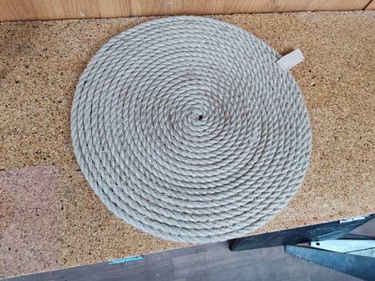 В прошлом году я сделал из каната навесные полочки на балконе, но куда девать оставшиеся 5 метров, понимания не было. И вот на днях я сообразил — из него же можно сделать клевые подставки. И на вид будет солидно, и практическая польза имеется.