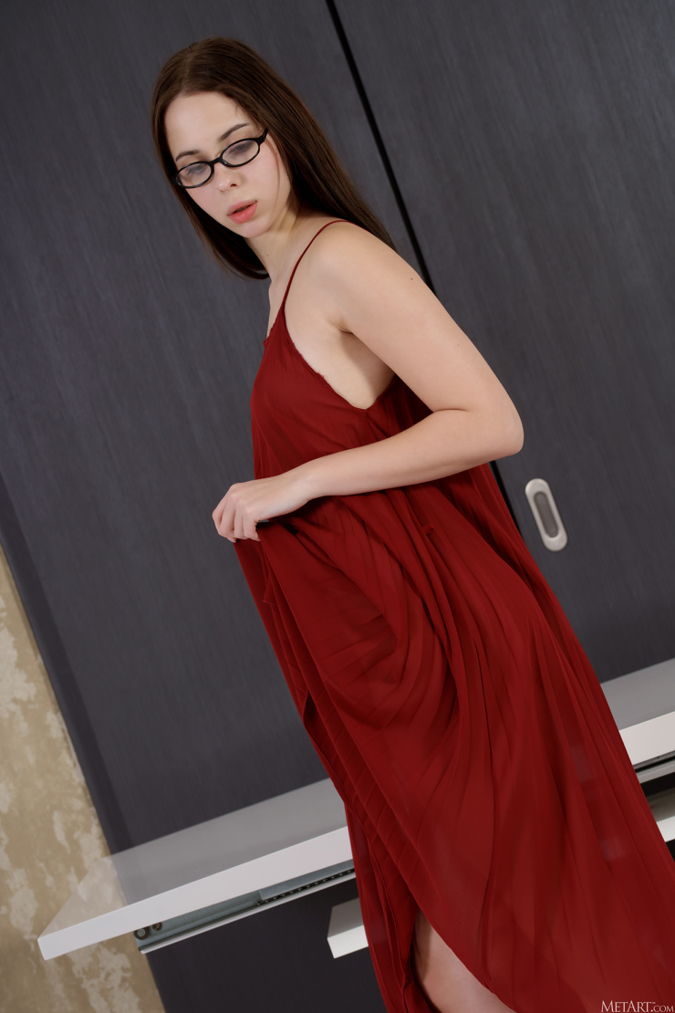 Элегантная властная женщина в длинном платье и очках развратно раздвигает перед камерой свои стройные красивые ножки