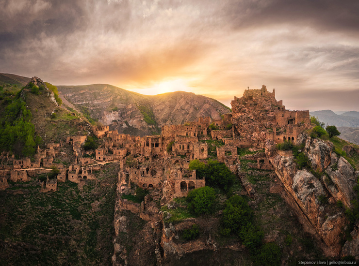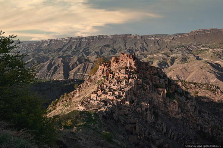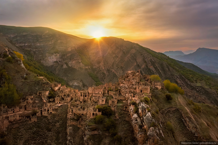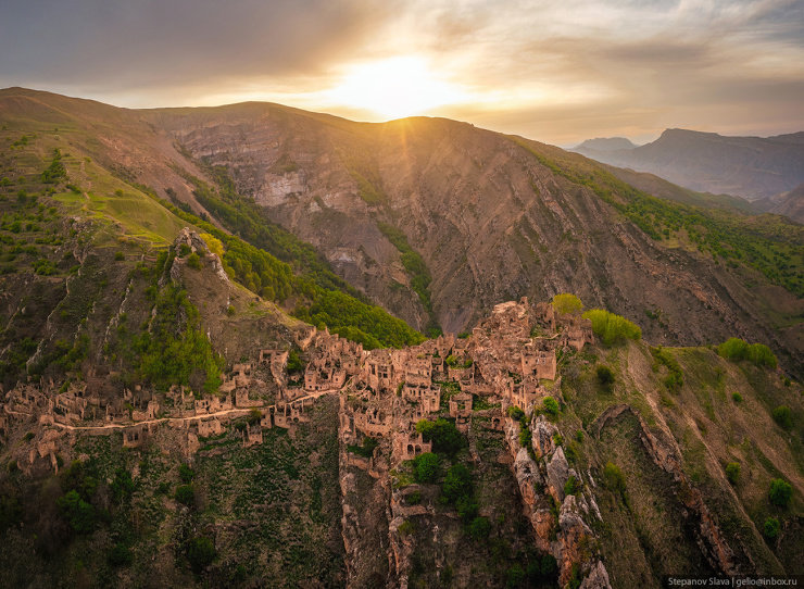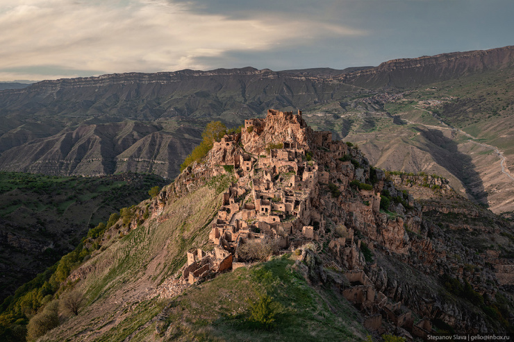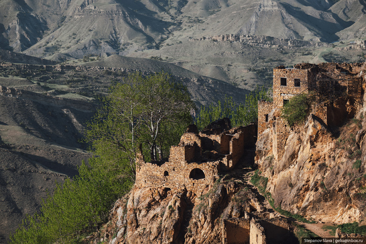 1. С военной точки зрения Гамсутль расположен очень удачно — отсюда хорошо просматривается местность, а трудный подъём и отвесные скалы делают поселение природной крепостью.