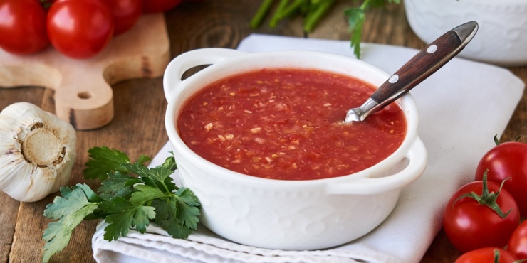 Соус «Огонёк» известен ещё с советских времён. Его готовят по-разному, но основные ингредиенты — это помидоры, чеснок и острый перец. Часто добавляют корень хрена, такой вариант мы и предлагаем попробовать.