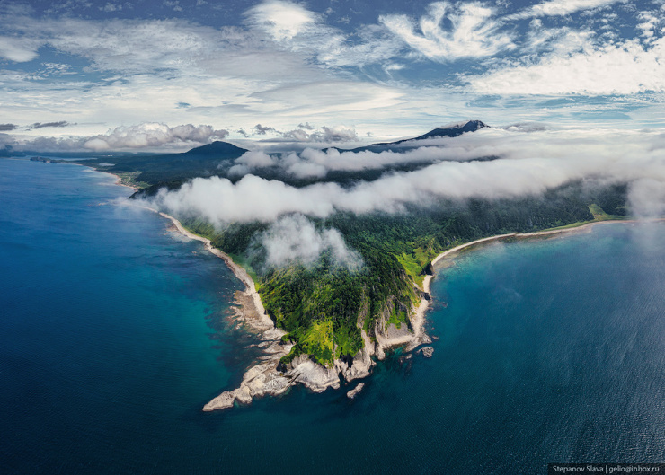 Территория острова Кунашир считается пограничной зоной — всего в 25 км находится японский остров Хоккайдо. На Кунашире 4 действующих вулкана, из трещин на склонах выходит пар и горячие газы, есть множество термальных источников. Даже электричество здесь вырабатывает геотермальная электростанция, которая использует энергию тепловых источников.