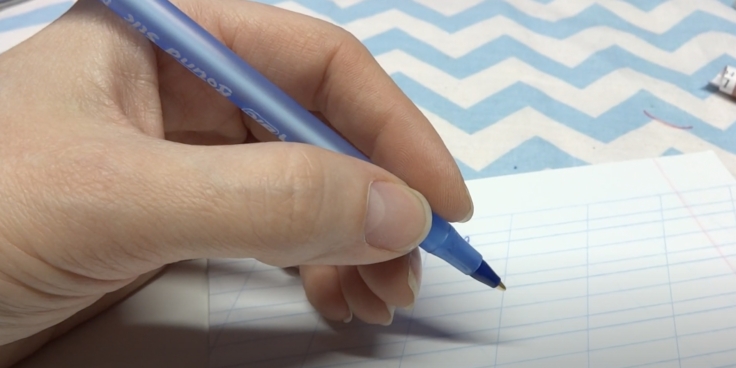 Правильное положение обеспечит качество и скорость письма. Положите ручку на правую сторону среднего пальца, указательным придерживайте её сверху, а большим — поддерживайте с правой стороны.