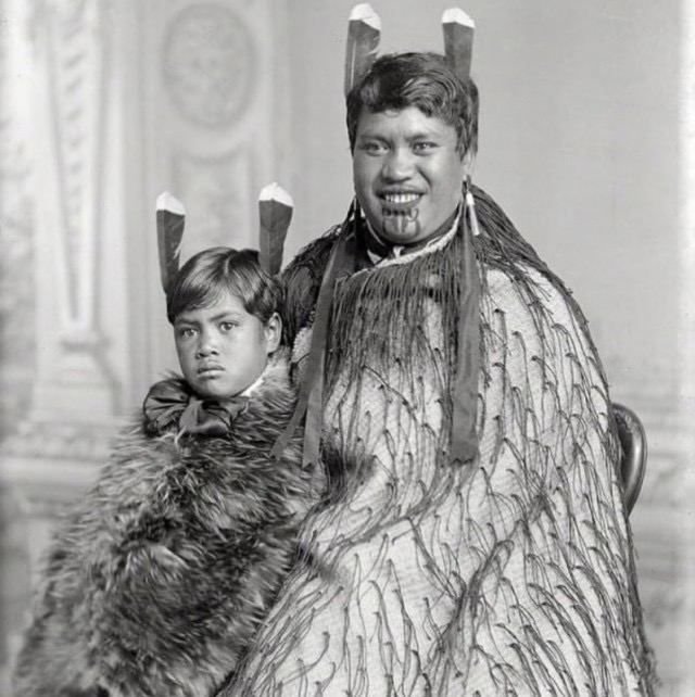 Женщина-маори и её сын, Новая Зеландия, 1890-е годы.