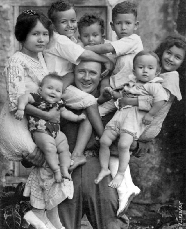 Американец обнимает свою филиппинскую жену и детей, 1920-е годы.