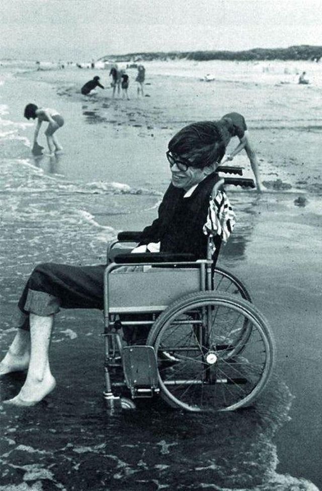Стивен Хокинг отдыхает на пляже, 1971 г.