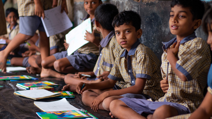 Обычно ученики начальной школы учатся на свежем воздухе, под навесом или даже без него, сидя на коврике и склонившись над тетрадями. Для детей постарше обычно предусмотрены парты и более удобные условия. Это практикуется в государственных, особенно деревенских школах.