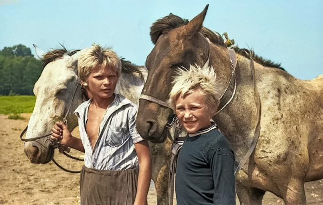 2. Дети. Бурятская АССР, 1959 год. На заднем плане редкий автомобиль ГАЗ М-72. Всего выпущено менее 5000 экз.