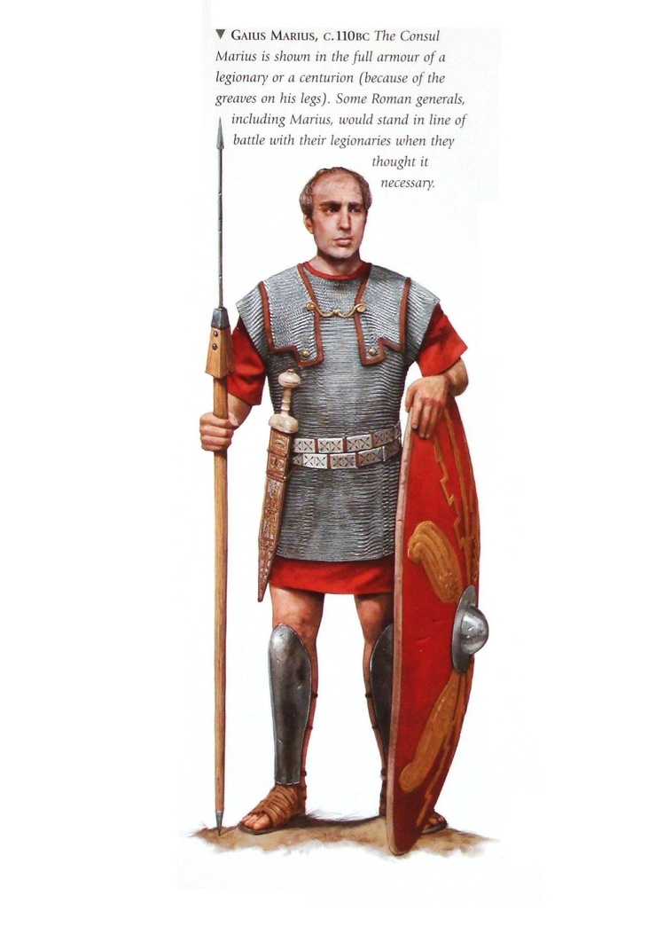 Так как пришлось выдавать вооружение централизованно, оно все больше унифицировалось — его заказывал сенат коллегиям ремесленников. Разделение на гастатов, принципов и триариев осталось, но условное. Легионеров теперь просто делили по возрастам, а не по имущественному цензу, выставляя, как и в стародавние времена, более молодых и легконогих впереди, а дедов сзади в резерве.