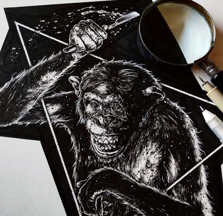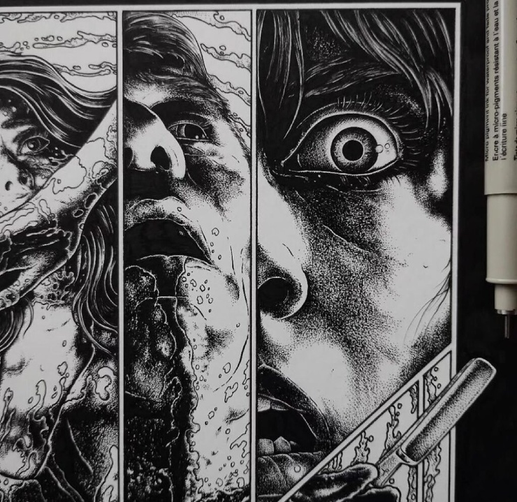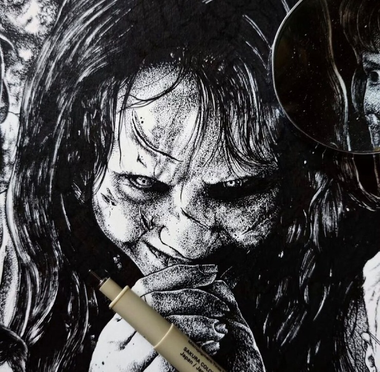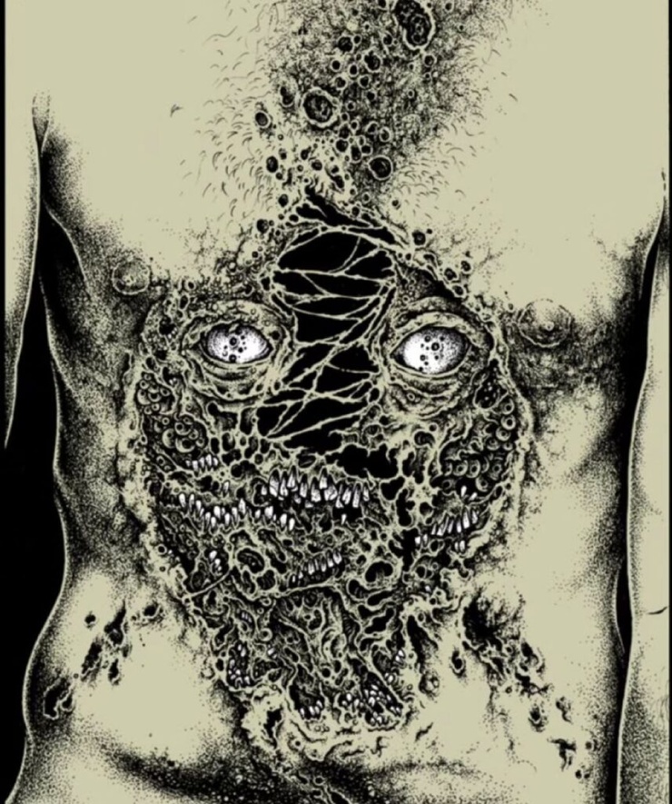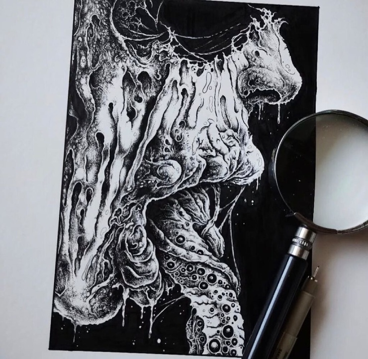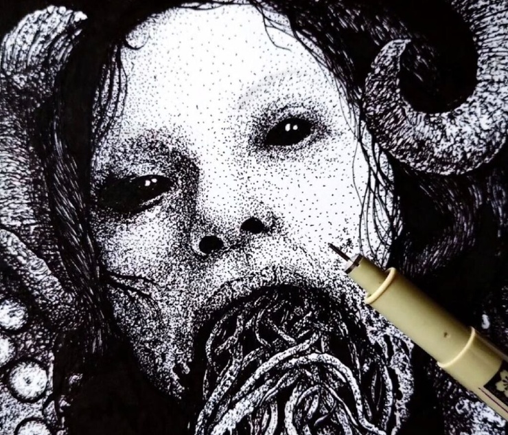 Александрос Пиромаллис — известный художник и сооснователь дизайн-студии Viral Graphics (например, она известна постерами и обложками для групп Soundgarden, Melvins и Swans). Он рисует иллюстрации по старым хоррорам и не только, соединяя тьму и мифы в разных вариациях. А еще делает принты для футболок и скейтбордов