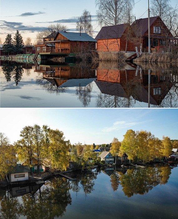 По сведениям редакции Novate.ru, дачи на крошечных клочках суши долее притягательны для любителей уединенного отдыха в окружении дикой природы, но в весенний период они страдают больше всего. Во время паводков участки подтапливает, вода поднимается на 1,5-2 метра, а иногда и выше, что становится настоящим бедствием. Весной 2016 года, например, очень много дачных домиков и вовсе ушли под воду, как и плодородный слой земли. Но такие катаклизмы не уменьшают количество желающих обзавестись домиком на воде с собственным пирсом/мостиком, к которому запросто можно пришвартоваться в весенне-осенний период или на утренней зорьке отправиться на рыбалку, не покидая дачный участок.