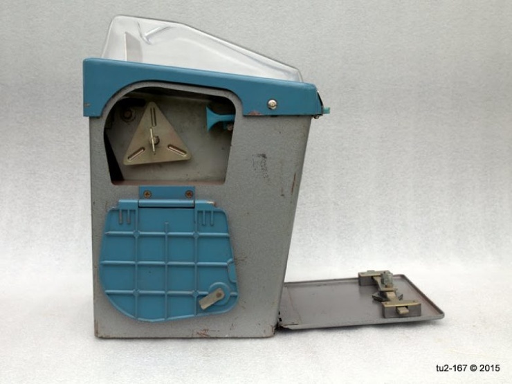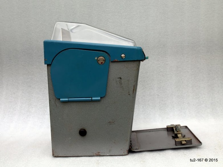 Честно скажу, что не знаком с конструкциями более ранних аппаратов, а потому не готов сказать, когда простой бункер для монет был заменён на сейф с замком. В сегодняшнем обзоре аппарат снабжён именно запирающимся сейфом для монет.