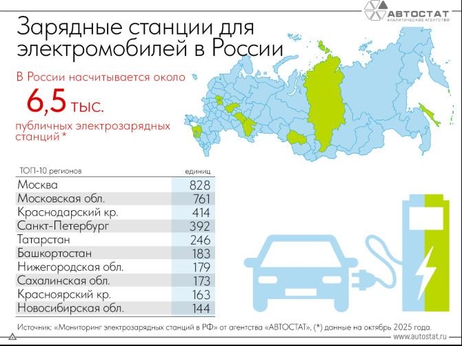 Число зарядных станций в России постепенно растет: с 4,36 тысячи штук в 2022 году до 6,5 тысячи штук к середине осени 2025-го. Наконец-то стало известно, в каком городе сколько зарядок находится.