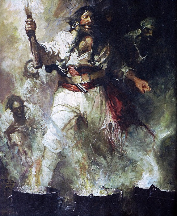Чёрная Борода — безусловно, самый знаменитый пират. Но что интересно, нет никаких свидетельств его жестокости: он грабил, но не убивал — команду захваченного корабля обычно ссаживали на берег или отправляли на шлюпках в море. Так что главную роль всё же сыграл его демонический образ. После смерти Чёрной Бороды моряки рассказывали многое — говорили, что видели его безголовый призрак, — дескать, капитан пытается найти свою голову, без которой его не может узнать дьявол и забрать к себе в преисподнюю.