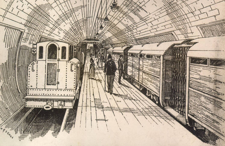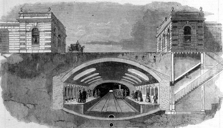 Идея связать городские вокзалы с деловым центром города в Сити появилась еще в 1830-е годы, однако к практической ее реализации смогли приступить только после окончания Крымской войны и решения вопроса с финансированием проекта. Строительство первой железной дороги нового типа началось в марте 1860 года и продолжалось менее трех лет. За это время и миллион фунтов стерлингов успели построить линию длиной чуть более шести километров с семью станциями на ней. Она связала лондонские вокзалы Паддингтон и Кингс-Кросс со станцией Фаррингдон на границе с Сити. 10 января 1863 года поезда отправились в 18-минутное подземное путешествие по железной дороге, получившей название Metropolitan. Первый метрополитен заработал!