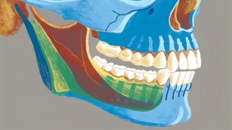 Сегодня человеку редко требуется такая сила, но челюстной аппарат остается примером биомеханического совершенства. Основную работу выполняют четыре парные мышцы: жевательная, височная, латеральная и медиальная крыловидные. Самая сильная из них — височная, она легко прощупывается на висках при сжатии зубов.