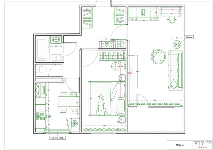 К процессу подготовки мы подошли вдумчиво. К проектированию подключилась вся семья. Мы начали с замеров и планировочного решения, которое сделали в онлайн-сервисе Remplanner. Там же подготовили рабочие чертежи для строителей, планы переноса розеток и освещения с размерными привязками, а также развертки стен.