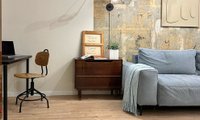 Параллельно решался вопрос с дизайном. Мы изучили рынок арендных квартир в районе, поговорили со знакомыми и постепенно нащупали концепцию. Хотелось подойти к реновации бережно и сохранить связь времен — соединить прошлое и настоящее. В итоге выбрали универсальный интерьер с теплой нейтральной базой, цветовыми акцентами в предметах и легкими отсылками к mid-century.
