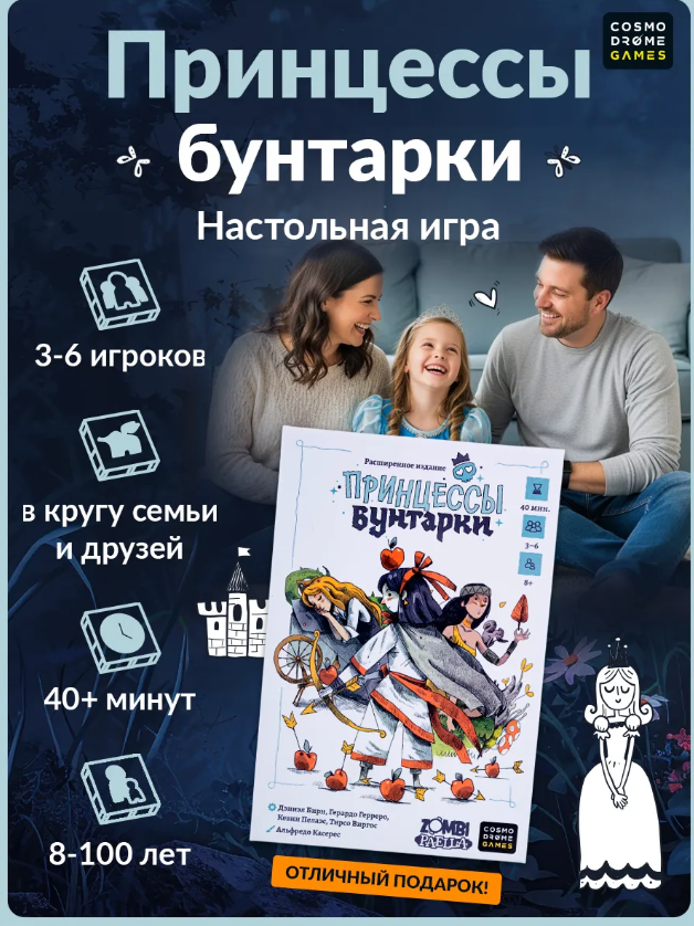 Современные принцессы не сидят в башнях. Они бунтарки, которые сбегают от назойливых женихов и находят свой путь. Цель игры проста: сохранить свободу, уклоняясь от брачных ловушек, и получить минимум предложений руки и сердца. Игра учит смелости, ломает стереотипы и нравится как девушкам, так и парням. Классный подарок для тех, кто любит юмор и новый взгляд на привычные истории.