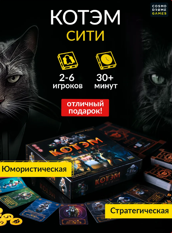 Котэм — город интриг, где вам нужно занять пост мэра, завоевав влияние с помощью нескольких фракций: журналистов, мафии, хакеров, робокотов и других. Игра стратегическая, а в ход идут любые уловки: можно не только заработать очки, но и расстроить чужие планы, не дав сопернику вырваться вперёд. Котикам придётся подключить логику, хитрость и всё своё обаяние. Для стратегов от бога предусмотрена усложнённая версия игры — скучно не будет.