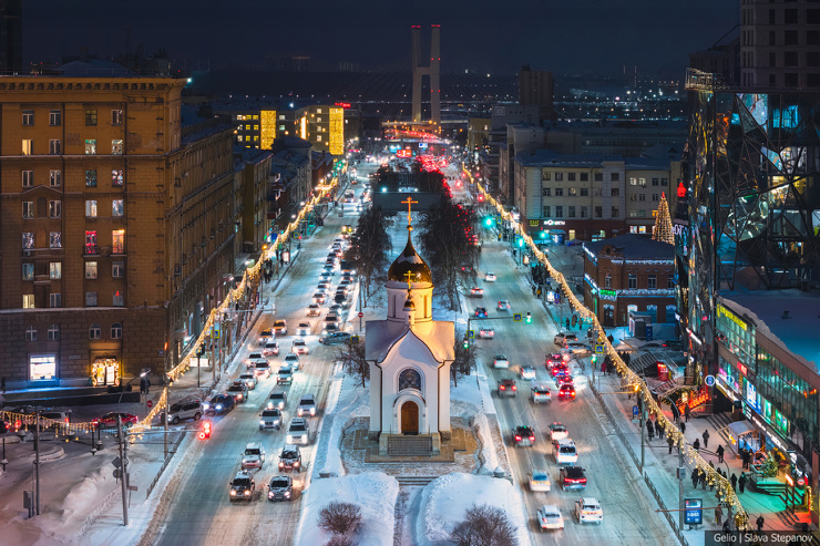 3. Центр Новосибирска всегда ярко украшен к новогодним праздникам.
