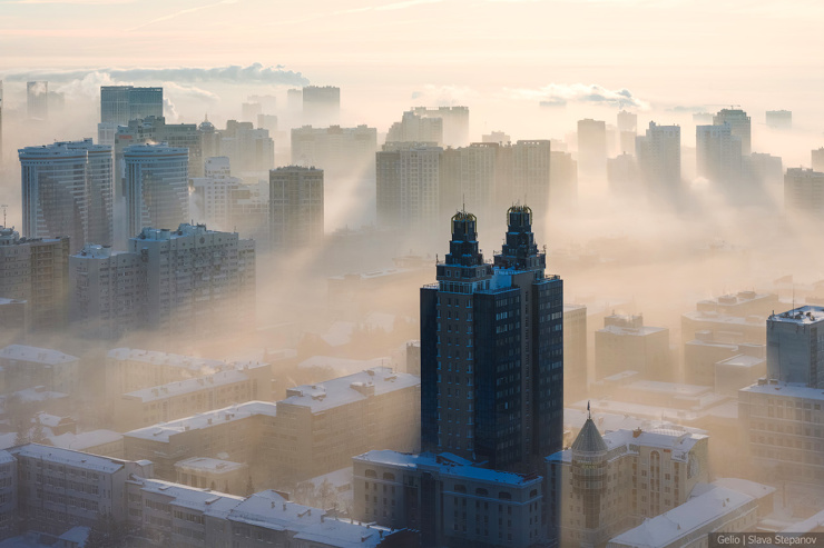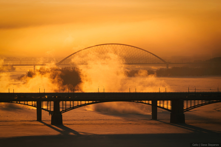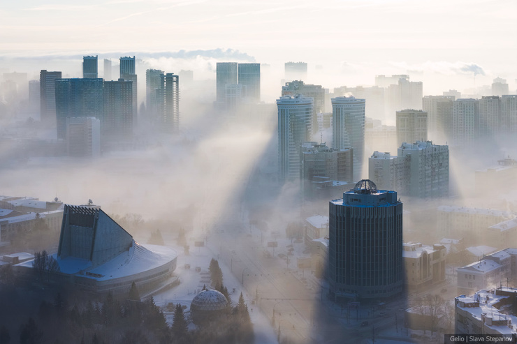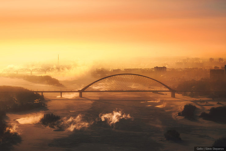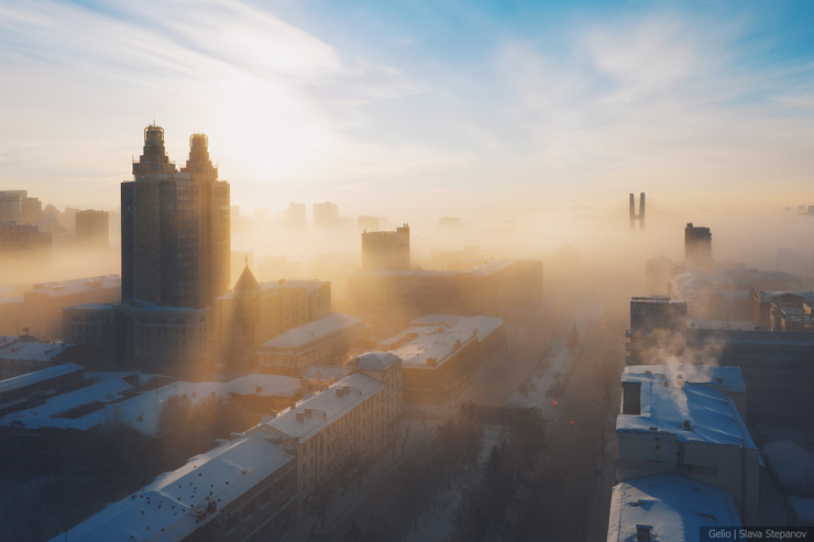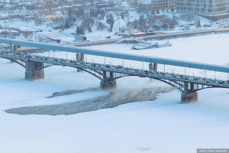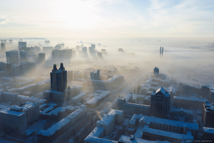 4. Морозный туман от Оби расстилается над городом.