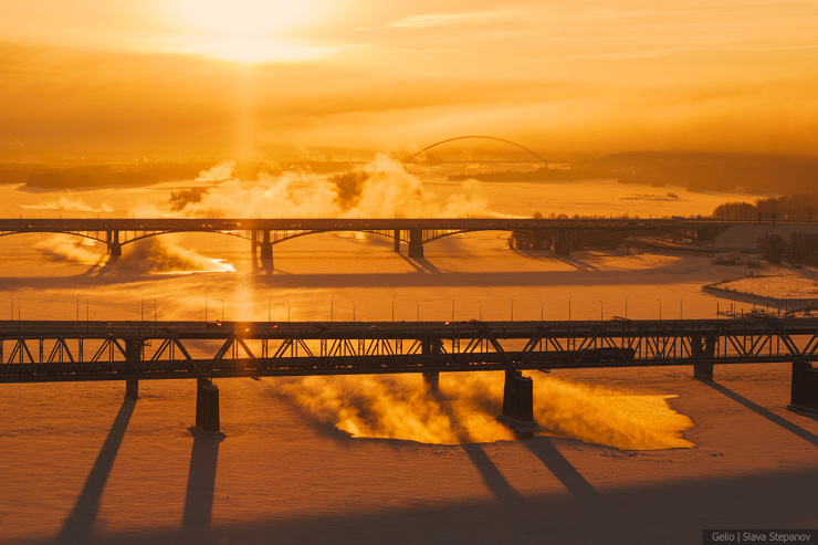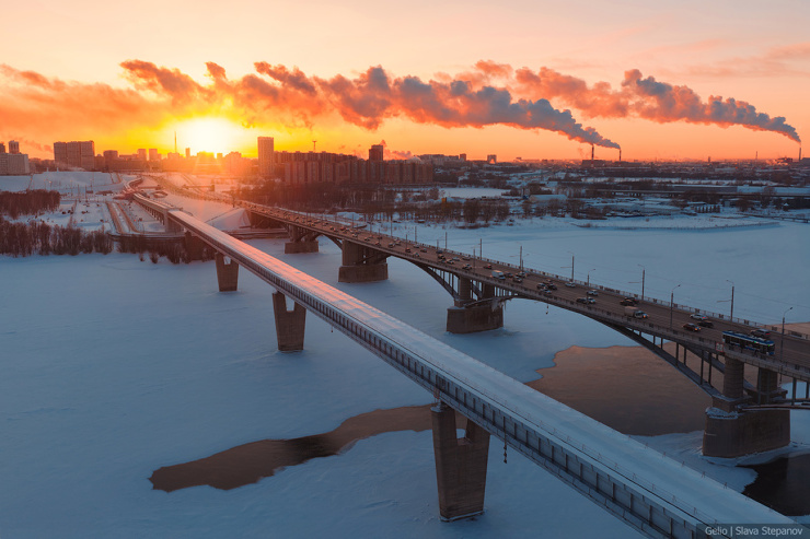 43. 5 мостов Новосибирска на одном фото: железнодорожный, четвёртый мост через Обь, Октябрьский, метромост и Бугринский.