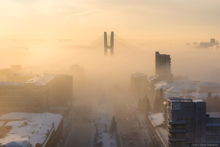 52. Пилон нового моста постепенно становится одним из самых узнаваемых символов Новосибирска — его видно даже через морозные туманы, которые несколько раз окутывали город этой зимой.