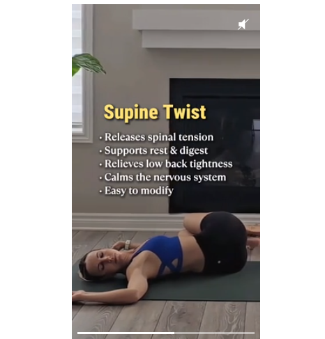 Легкие скрутки помогают снять напряжение в позвоночнике и мышцах, накопленное за день. Это упражнение также улучшает дыхание и помогает отпустить физический и эмоциональный стресс.