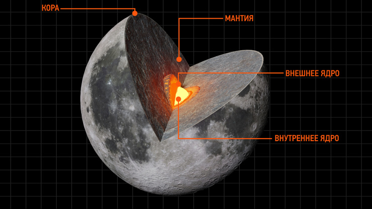 Из-за того, что мантия и кора занимают почти весь объем, на долю ядра остается лишь около 20% диаметра. Для каменистых планет это немного: например, ядро Земли занимает больше половины поперечника. Лунное ядро, как и земное, имеет твердую железную сердцевину с примесью никеля и серы, окруженную расплавленным внешним слоем. Но есть ключевое различие: земное ядро активно и генерирует магнитное поле, защищающее нас от солнечной радиации. У Луны такого поля нет, и она беззащитна перед солнечным ветром. Именно это беззащитное положение создает на ее поверхности загадочные «лунные завихрения» и статические разряды.