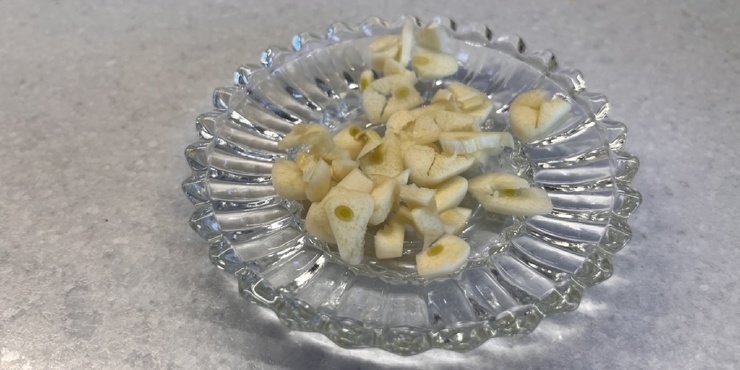 Мелко нарежьте чеснок.