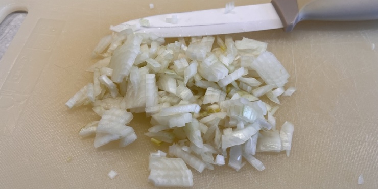 Нарежьте лук мелким кубиком.