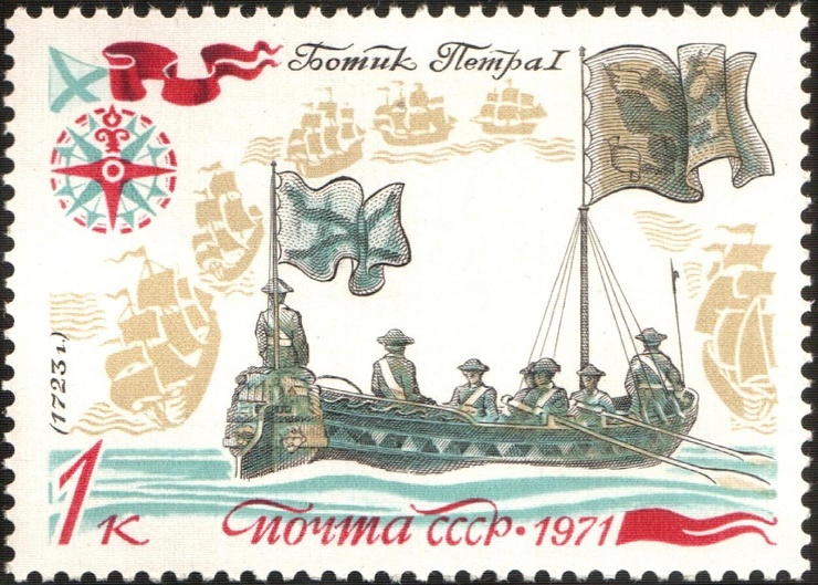 Ботик Петра I на советской почтовой марке. Источник: Wikimedia Commons