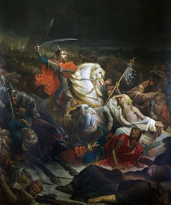 «Два же каких-то воина отклонились на правую сторону в дубраву, один именем Федор Сабур, а другой Григорий Холопищев, оба родом костромичи. Чуть отошли от места битвы — и набрели на великого князя, избитого и израненного всего и утомлённого, лежал он в тени срубленного дерева березового. И увидели его и, слезши с коней, поклонились ему, Сабур же тотчас вернулся поведать о том князю Владимиру и сказал: «Князь великий Дмитрий Иванович жив и царствует вовеки!»»