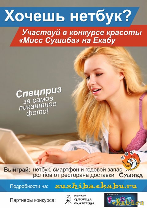Напоминаем о том, что на нашем портале проходит конкурс красоты "Мисс Сушиба", где самые красивые девушки Екатеринбурга сражаются за звание Главной Мисс, нетбук и кучу других ценных призов.