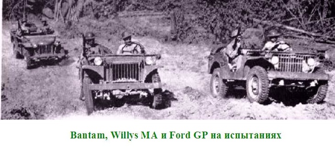 Опередив конкурентов, в сентябре 1940 года опытный образец автомобиля представила компания Bantam. Через два месяца свои прототипы завершили Willys Overland и Ford Motor. Первые варианты существенно отличались от будущих серийных автомобилей. Модель Willys называлась Quad (Четверть), модель Ford - Pigmy (Пигмей). К лету 1941 года все три автомобиля прошли испытания в армии США, и были признаны пригодными к принятию на вооружение.