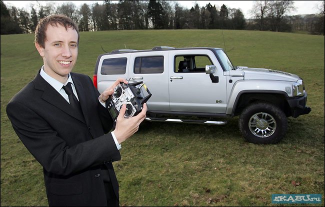 а по-моуму лажа полная, чувак просто выпендривается рядом с машиной, держа пульт в руках, ни одной реально подтверждающей фотки что Хаммер на радиоуправлении нет. А пульт как раз от машинкси с поледней пикчи