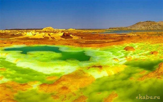 токсичные газы и, традиционные уже, серные озера. В этом месте Аравийская тектоническая плита разламывается,