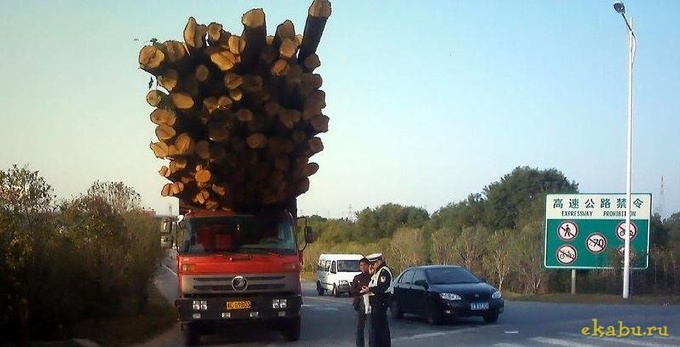 Как известно, логистика призвана организовывать процесс грузоперевозок наиболее оптимальным образом. Так вот, китайские грузоперевозки назвать логистикой не поднимается язык, потому как само слово "логистика" созвучно со словом "логика", которая у большинства китайских водителей напрочь отсутствует...
