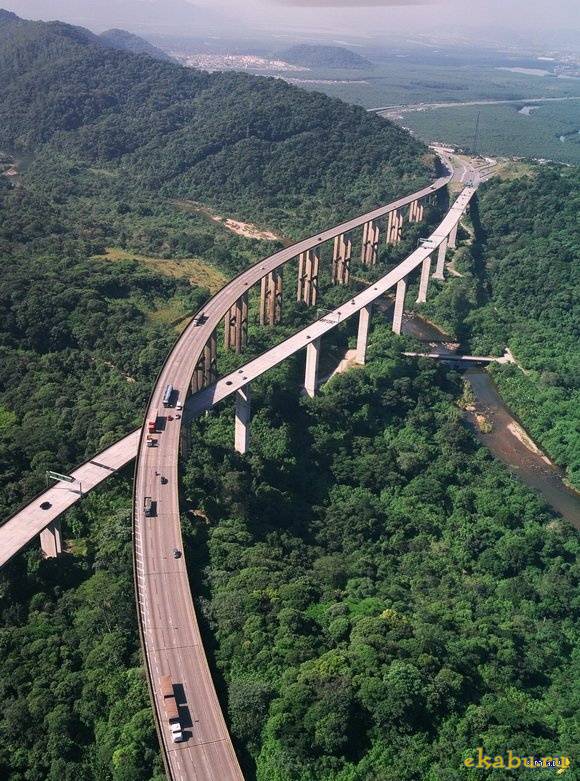 Дорогой, которая идет через лес, никого не удивишь. А дороги над лесом? Так, чтобы можно было ехать на верхушками деревьев? Удивительный путепровод Rodovia dos Imigrantes такого плана есть в Бразилии.