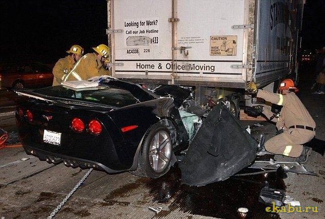 Любители быстрой езды порой заканчивают очень плохо, но этому гонщику крупно повезло: он едва не остался без головы - передняя часть автомобиля полностью пролезла под грузовик и остановилась вовремя. Еще несколько сантиметров, и голову мужика расплющило бы. После такого урока ему следует пересесть на машинку поспокойнее.