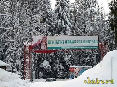 На въезде в поселок Колчедан появилась растяжка, на которой девушка показывает жестом «ОК», рядом размещен текст: «Кто курит спайс тот пид*рас»