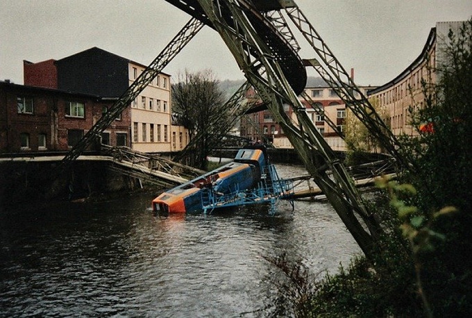 Кстати, за 112 лет эксплуатации на Швебебане была всего 1 авария с погибшими, в 1999-м году. Рабочие оставили на рельсах металлический зажим, поезд наткнулся на него и упал в реку Вуппер. 5 человек погибли, 47 ранены. Вот эта авария.