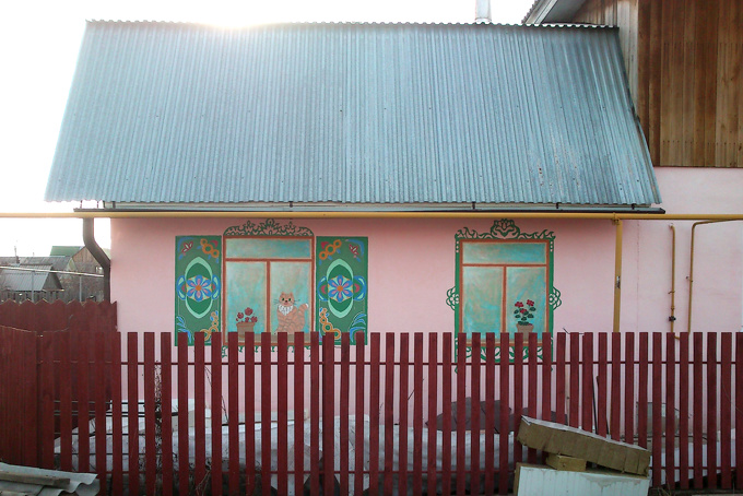 Мне довелось общаться с хозяином дома, он говорит, что эти окошки - творение рук его дочери)))