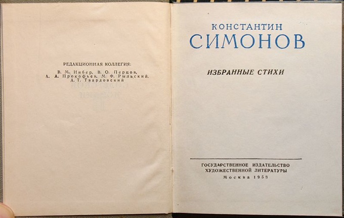 Титул книги Симонова в «Библиотеке советской поэзии»