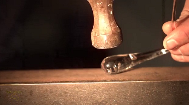 Если бросить в воду каплю расплавленного стекла, оно приобретет форму головастика с очень длинным хвостом. Самое интересное в этом эксперименте заключается в том, что если ударить молотком по шарообразной части, застывшая капля не разобьется. Но если несильно задеть хвост то весь стеклянный головастик просто взорвется. Это хорошо видно на замедленном видео с частотой 130000 кадров в секунду.