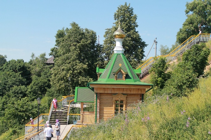 Примерно по середине лестницы находится Святой источник, в котором за пожертвование можно набрать воду