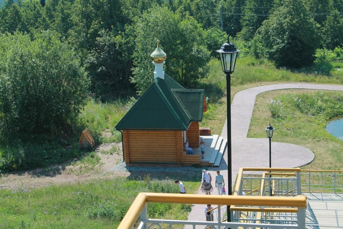 Внизу находится небольшой прудик и купели, к ним ведут лестницы