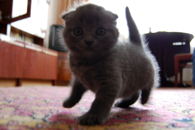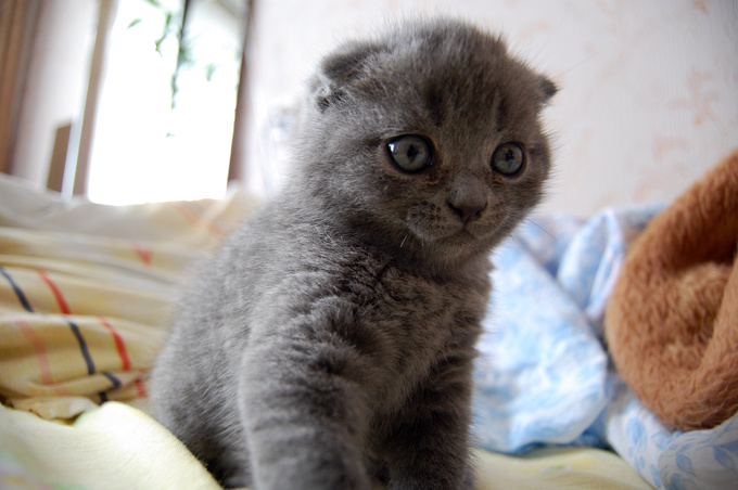 Очень важно обратить внимание на форму носа. У британских вислоухих кошек нос широкий и прямой. Что касается шерсти котенка, то можно сравнить ее с норковой шубой, то есть шерсть короткая, но очень «набитая». Маленькие британцы получают более темный окрас при рождении, но к 4-6 месяцам жизни окрас шерстки меняется. Правда, дольше всего остаются колечки на хвосте, но и они пропадают к первому году.