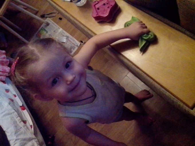 Примеряем, и закрепляем. Старшая дочка Анютка была отличной помощницей, даже саморезы закручивала. А младшая тем временем помогала маме и протирала пыль