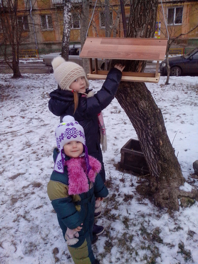 Вешаем ее на дерево около дома и насыпаем корма.